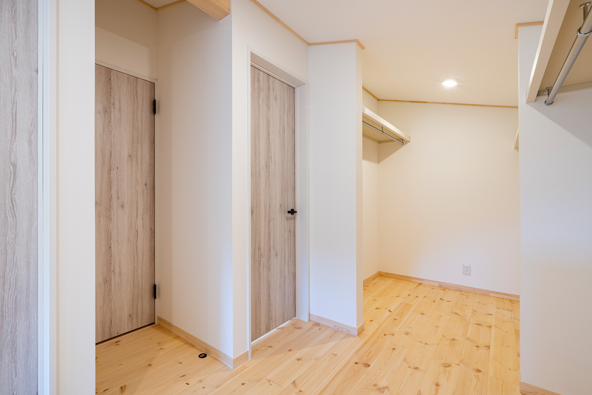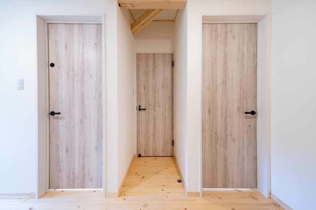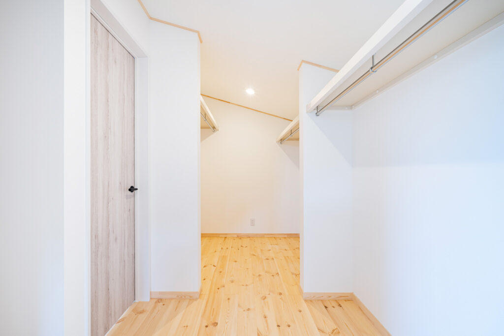 2階には、家族それぞれの部屋のそばにウォークインクローゼットを配置。